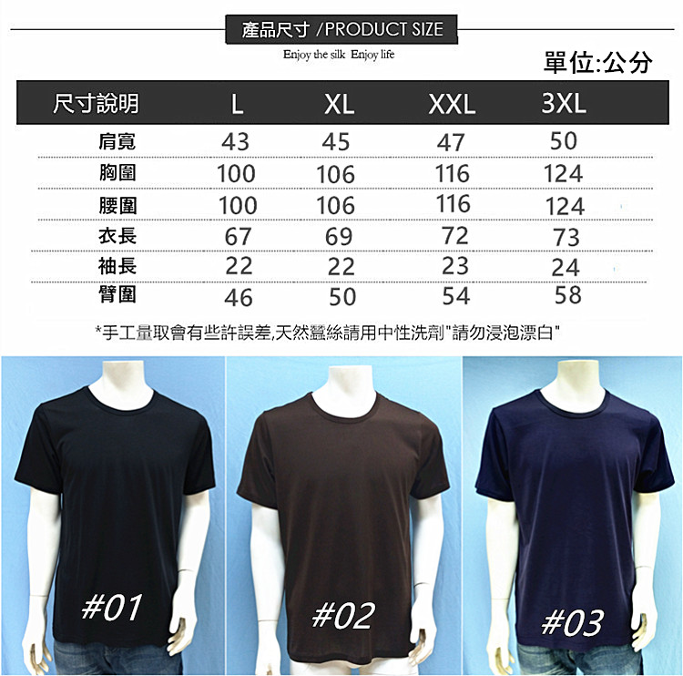 穿著參考:身高:170cm.體重:70kg穿XL合身,穿XXL寬鬆(提醒您~天然蠶絲會因為體溫而變大半號)