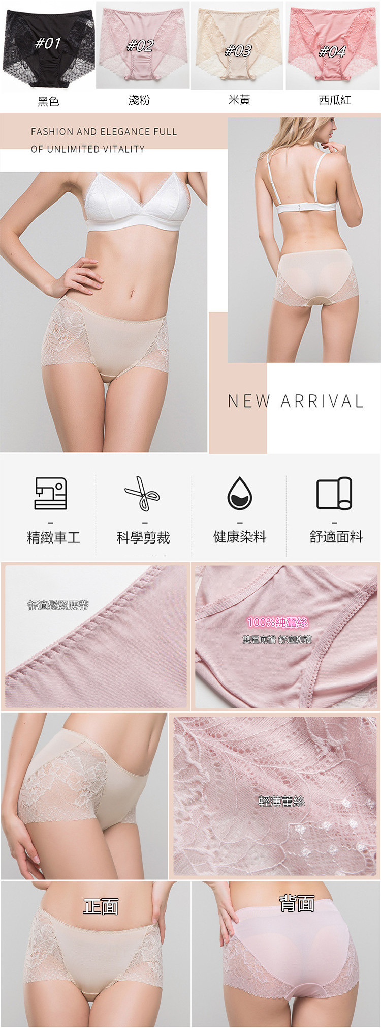 【商品名稱】:蠶絲拼接蕾絲防護內褲